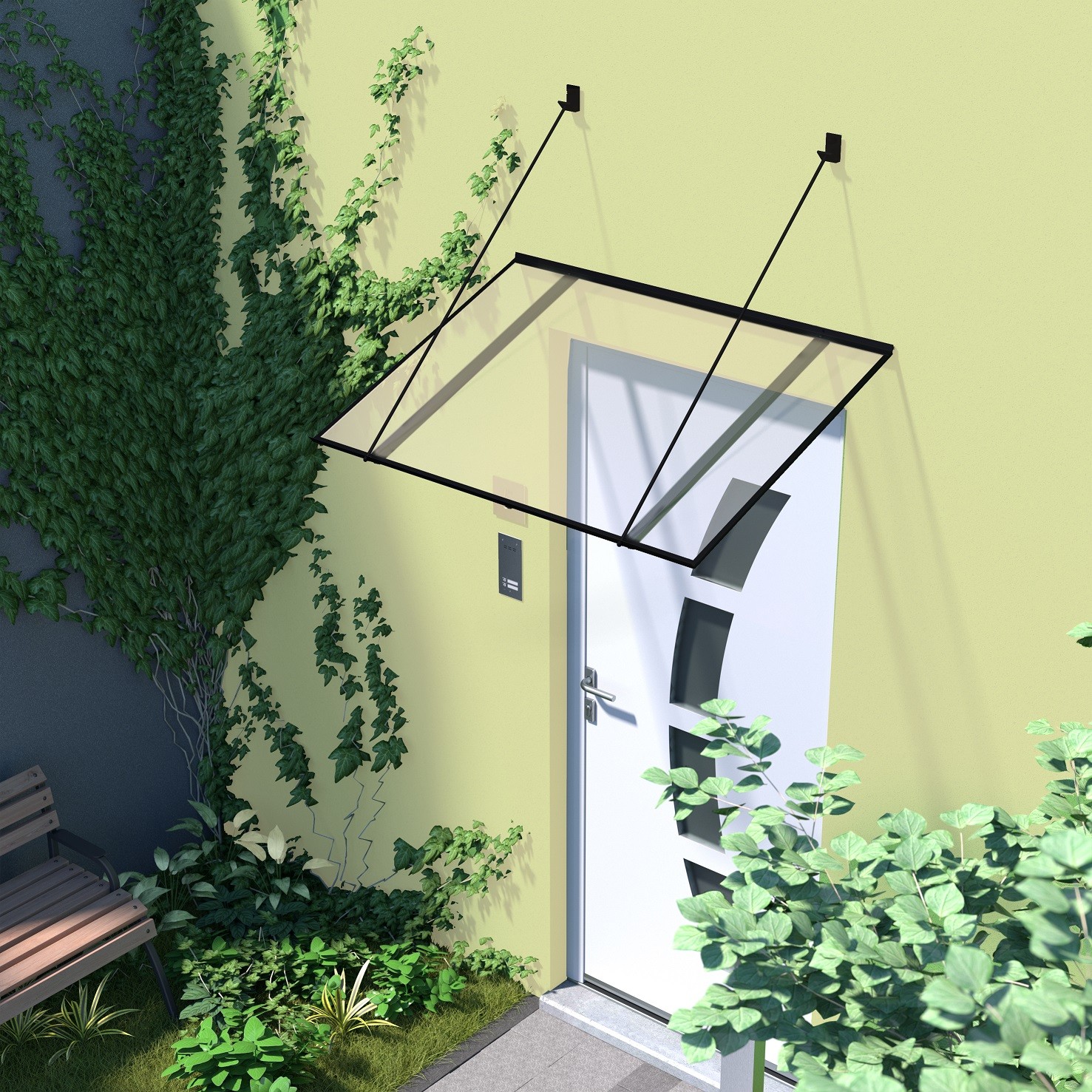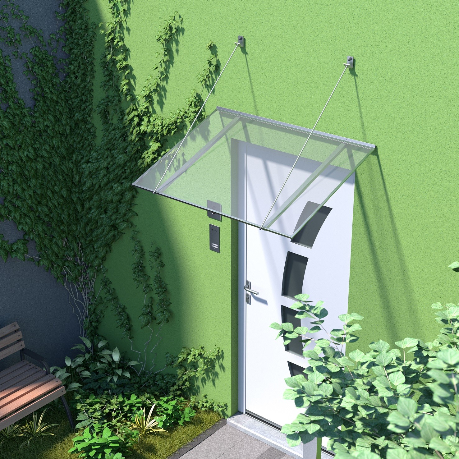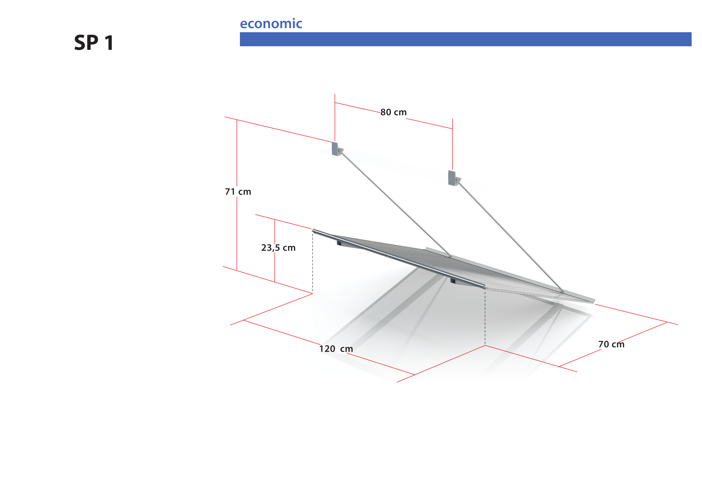 Zadaszenie płaskie wykonane jest na odciągach z rynienką odpływową i uszczelką przyścienną. Konstrukcja została wykonana z aluminium malowanego proszkowo. Konstrukcja dostępna w 4 kolorach: biały, brązowy, srebrny, antracyt. Wypełnieniem daszka jest trwała płyta z poliwęglanu litego. Jest to doskonała jakość w dobrej cenie, która sprawdzi się idealnie. Daszek jest lekki, ma zaledwie 3,7 kilograma wagi i wytrzymuje obciążenie do 90 kilogramów. Uszczelka przyścienna zapewnia doskonałe przyleganie daszku do każdej ściany. Daszek można montować do ściany z izolacją termiczną, ale konieczne jest wówczas zastosowanie tulei dystansowych oraz kołków rozporowych.