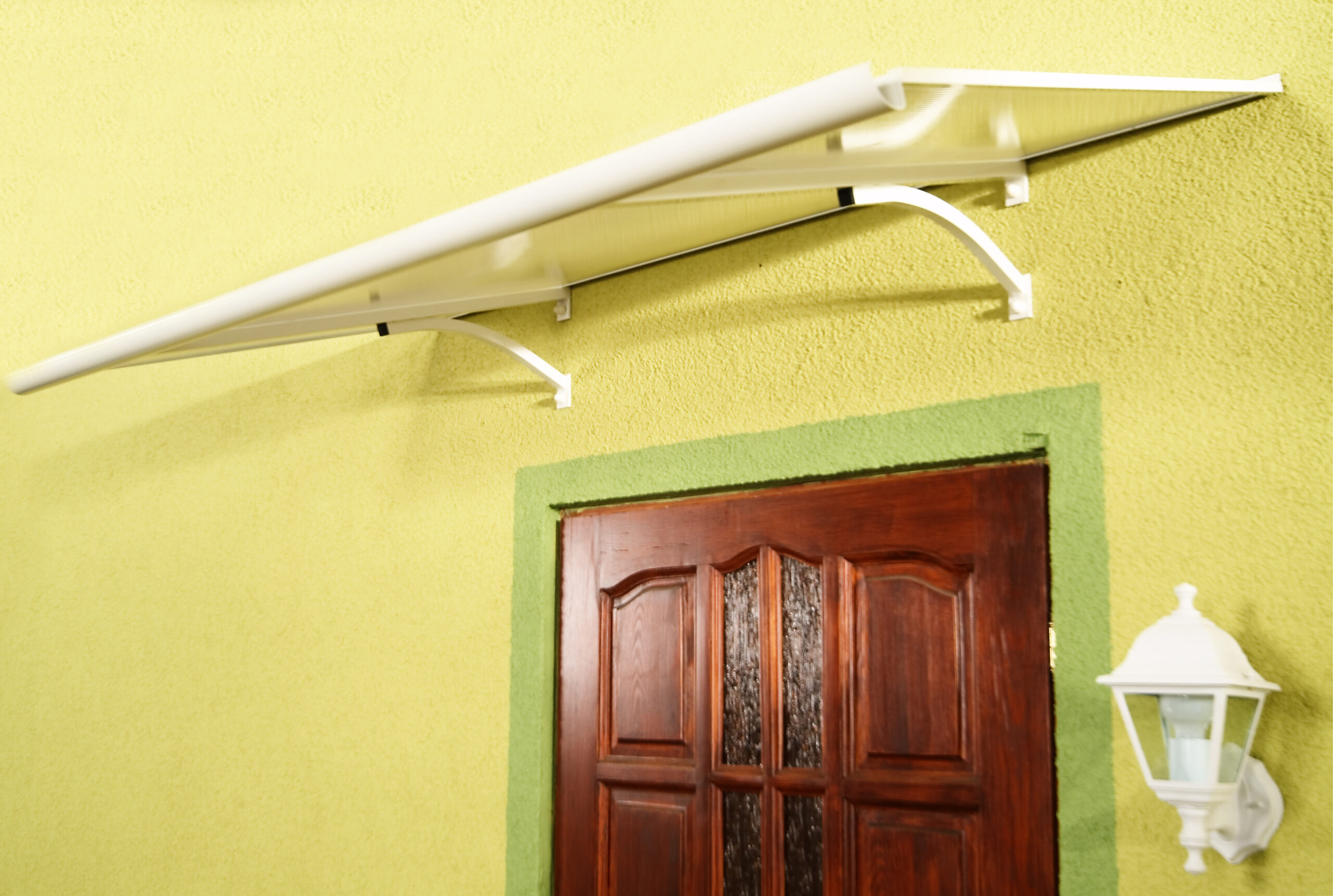 Daszek MELES to solidna i estetyczna ochrona wejścia do Twojego domu. Konstrukcja wykonana z aluminium malowanego proszkowo w połączeniu z płytą z poliwęglanu komorowego zapewnia trwałość, odporność na warunki atmosferyczne oraz nowoczesny wygląd. Dwustronny filtr UV skutecznie chroni drzwi przed działaniem promieni słonecznych.