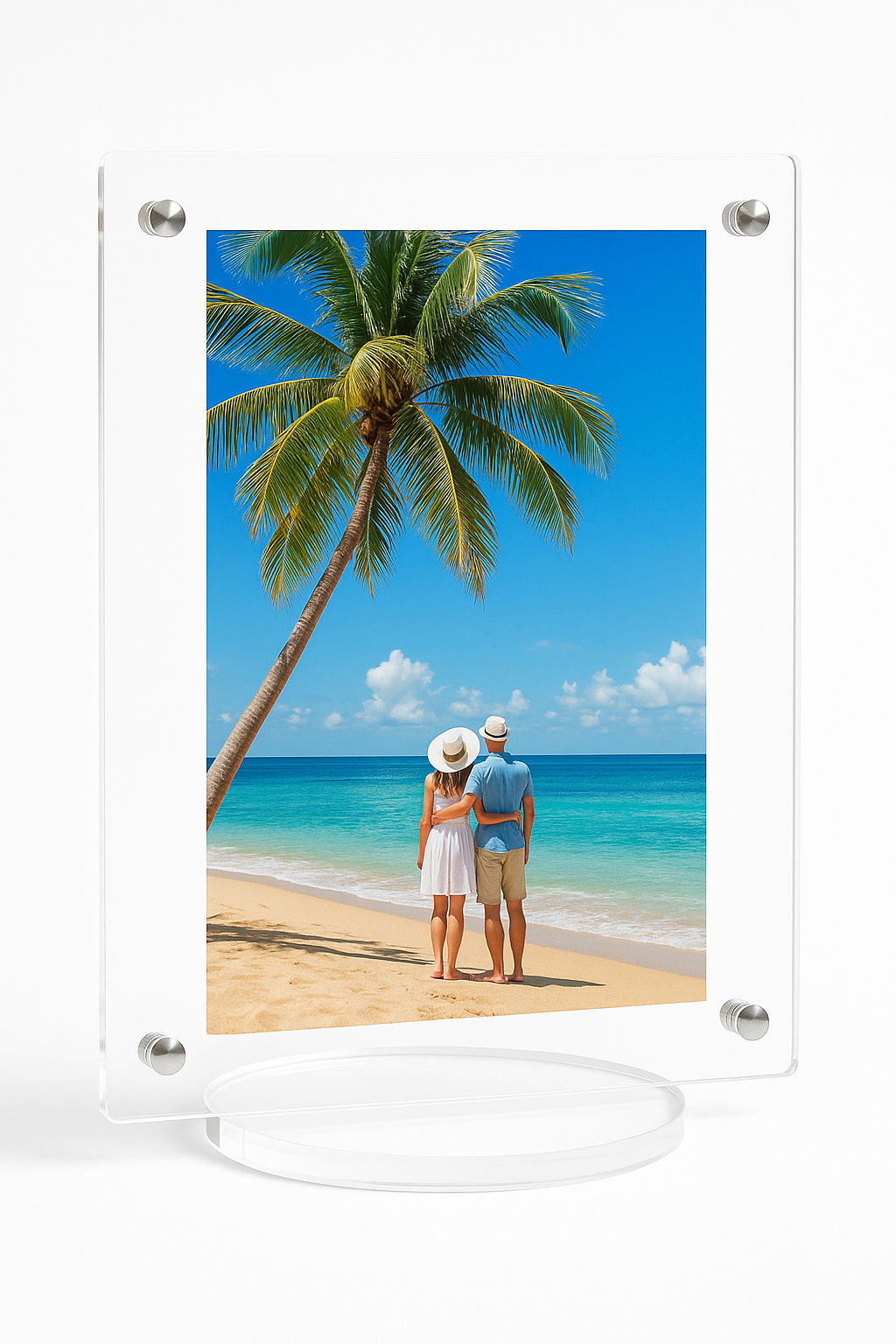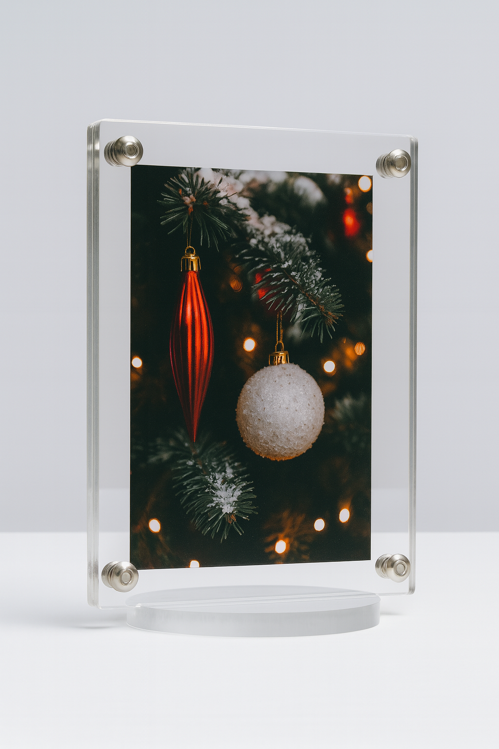 Podkreśl wyjątkowy charakter swoich wspomnień dzięki nowoczesnej ramce wykonanej z wysokiej jakości, krystalicznie przezroczystego akrylu. Jej minimalistyczny design dopełniają industrialne śruby mocujące, które nadają całości wyjątkowego, nowoczesnego charakteru.